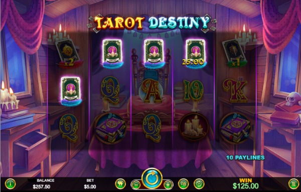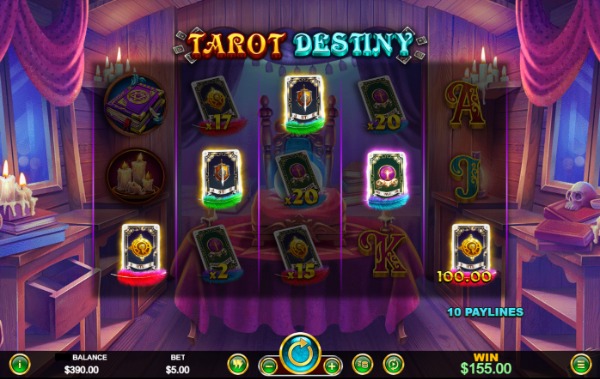 Reels & Paylines: Tarot Destiny is a 5-reel, 3-row video slot with 10 fixed paylines. Players cannot adjust the number of active paylines.