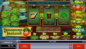 The luck of the Irish could be yours when you sign up for an exciting cruise with the jovial Irish crew of clover leaf pirate Jackpot Jack in this fun new fruit machine game. Using a 3 reel, one pay-line platform, Treasure Ireland is an AWP machine with the traditional nudge and hold features that enable you deliver on a whole range of opportunities and rewards.